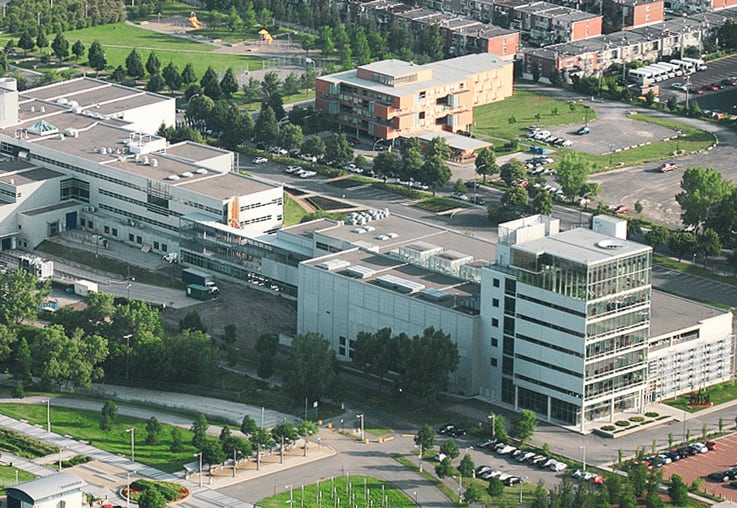 La sede internacional de Cirque du Soleil se emerge orgullosa en el distrito de Saint-Michel de Montreal, en el sitio del antiguo foso de arena Miron y el Centro de tratamiento y eliminación de desechos de Montreal. Su construcción en 1997 fue parte de una iniciativa más amplia en Saint-Michel: un programa de desarrollo urbano donde Cirque du Soleil encarne el centro cultural del Complejo medioambiental del distrito.