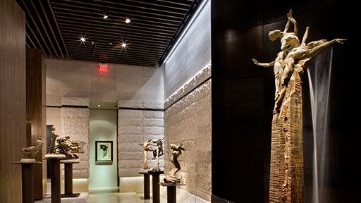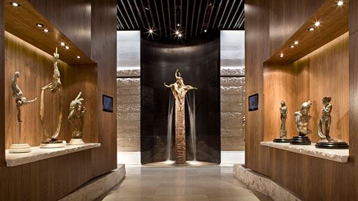 Le Crystals du CityCenter présente plus de 50 sculptures de bronze, notamment 10 œuvres de taille majestueuse, et de nouveaux dessins et peintures originaux de l’artiste. Parmi les points d’intérêt de cette galerie, mentionnons une cascade de 12 mètres, des murs de pierres deux tons et des niches arrondies faites d’acier qui donnent de la vigueur à l’ensemble. Avec 334 mètres carrés d’exposition, la galerie s’avère un des plus importants espace dédié à la sculpture du monde.